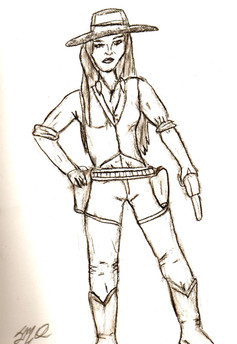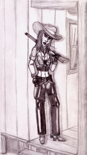 That's where this came from. I had to reference anything I could for the saloon girl because other than Madeline Kahn from Blazing Saddles I couldn't think of anything else to go on. I did think of the video game 'Gun' and I figured why not have three different girls (Irish, American, Apache) from three different walks of life (saloon girl, gunslinger, warrior) and then put them together for the same purpose. Sounded like a good idea at least.