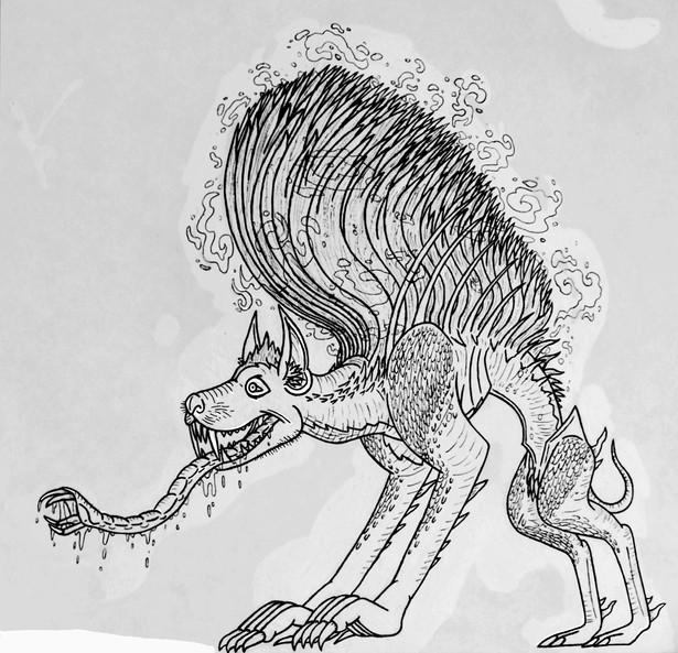 Charcoal pencils, with some light digital filtering.Redraw of a creature I drew as a little kid, with some other scrap creature bits recycled into it.