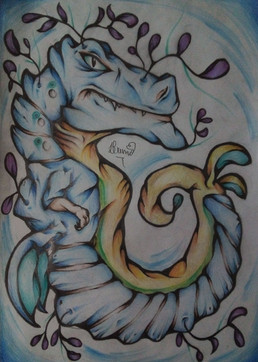 Currently working on a contest piece, so it might be a little while before I upload anything new. So in the meantime, I thought I would upload the concept piece I drew recently.The snake-orchid amphiptere is a medium-sized tropical dragon that uses its forked tail to perch on tree branches or to steady itself while on the ground.