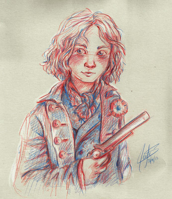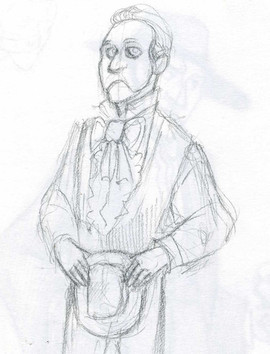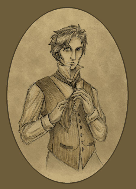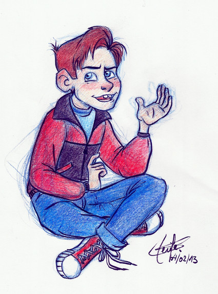 This is a nice sketch. I particularly like the upper body positioning, and the way you did his expression. I also especially like his hair, vest, and glasses. Well done.