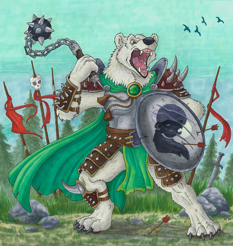 #fantasy #furry #gnoll #hyena #mod #masterofmagic #anthro #anthropomorphic #knight #lancer #painting #rider #soldier #traditionalart #videogame #watercolor
