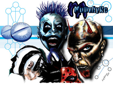 Este un dibujo de los grandes Mudvayne... cuando lo hice, estaba experimentando en colorear con contrastes fuertes, y el resultado fue este.No quedó como esperaba pero bueh...