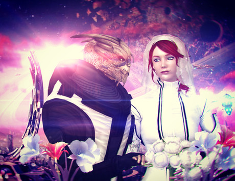 BioWare did a really great job with the Mass Effect Series. One of the only actions in the romances they did not make possible was marriage, so I thank you for creating this beautiful picture! I mean it, great work!Β Β