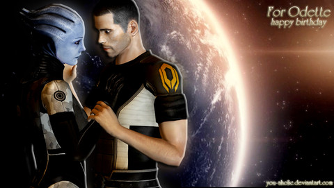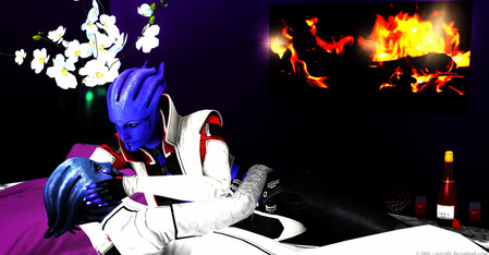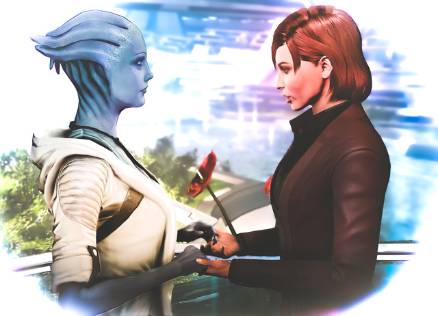 Liara by SonYume, Shepard by PrincessFelia, Roses by Ola
