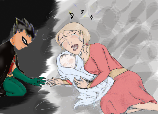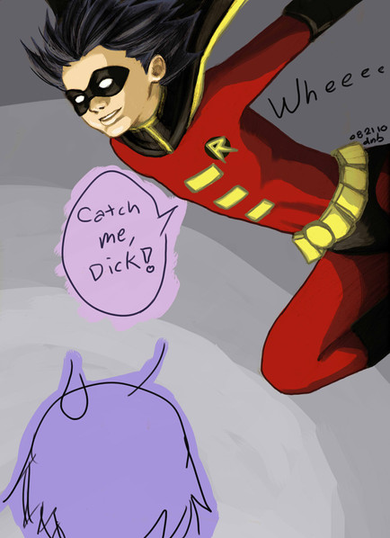 That'll be creepy if I was robin. Hearing the soound of Slade's voice. Cool sketch! Nice detail with Robin!