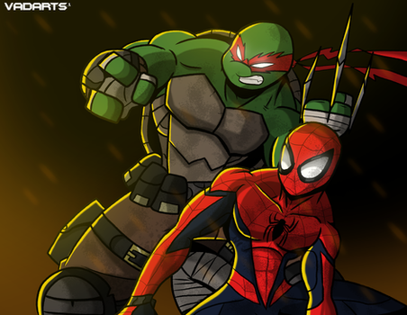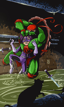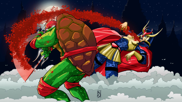 Raphael is so kind he even tried to kill the fly on tony's back... too bad he missed.