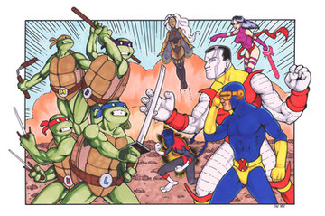 This is my entry for the Character Battle Royale at OUTCASTSTUDIOS.comI made it to the final, where my character of choice, Raphael, has to face two other heroes, Ironman, and Janet van Dyne-Pym.