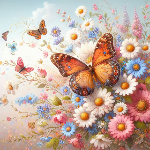 Here I chose the classic spring flowers with some butterflies, which of course also herald spring and the awakening of nature.