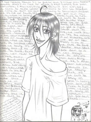 Yet another Karasu, my second attempt, and AGAIN no reference...and um....well....you see......you know how some people cut themselves when they're depressed?.....I THINK KARASU EXPLODES HIS FLESH! So...that's why he's all cut up and such. GOODBYE! *runs offf*Related content