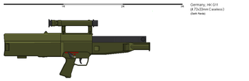 Hey! What If you'd try a cased weapon next, eh? I could convert the round to a traditional 6.5x40mm. That would also necessitate a curved mag.
