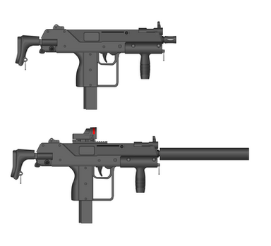A small little project I did yesterday. A mixture of the famous Ingram Mac10 and a less known austrian SMG called Steyr 69.The main diffrences are the foldable stocks. The one below the big block is my favourite version.