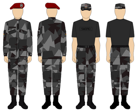 Uniform design for my SWORD unit.Standard BDU and BDU plus tactical-vest.