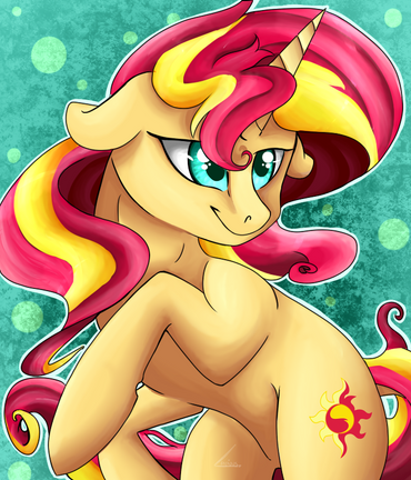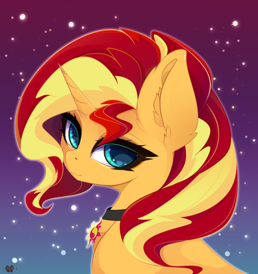 Omg, it's Sunset. Wooooo, I really love her in thisss. The colors really match well for her & the way you've done it is so wonderful with the coloring heh. It looks super pure & just natural in a way that draws your attention. Also her eyes & eyelashes ahhhhhhhhhhhhh <3 Super fluffy & adorable with these, I always love Sunset's mane & seeing it in your style is really great. And the mane shading tooooo, love thisss