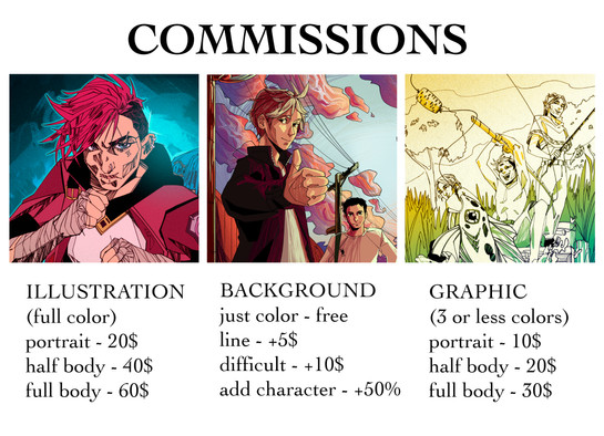 - Feel free to note me about character design, character sheet, or illustration commissions!