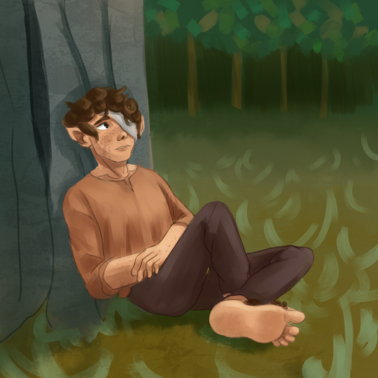 I love how you painted his visible foot with the sort of dirty toenails bc that's so accurate and the veins in his ear!!?