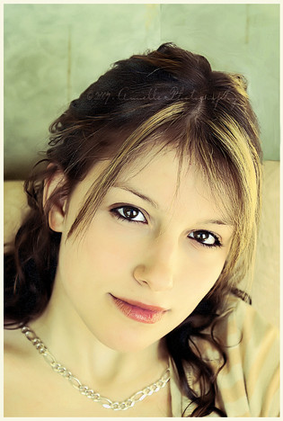 Elle est adorable. Cependant derrière l'innocence se cache une espèce de frayeur partagée d'émerveillement mystique, expression intéressante et très bien rendue ! C'est rare de voir des modèles qui "changent de tête" d'une photo à une autre x) réussi !