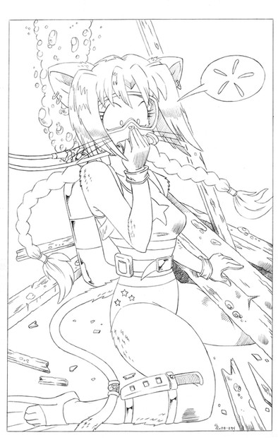 Usually I come up with a different name than the original one came with (gotta be me), but I couldn't really come up with any good ones. The original name also suited the situation, so there ya go.Anyway, Ukitsu and Xian are having fun tying Ran up with her scuba equipment (Weight belts make excellent bondage).