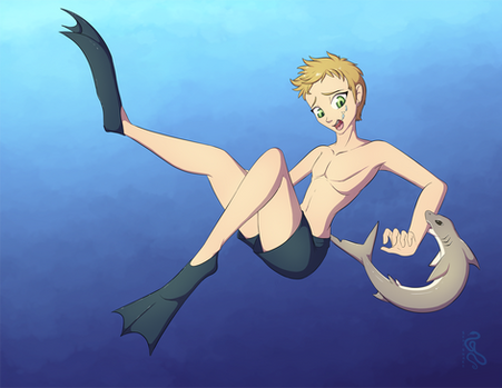 Commission forHis OC Isuel, and a baby shark. Better hope mama's not around.