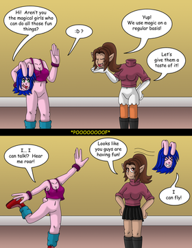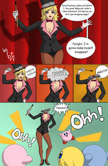 This is funny. I'd like it if the assistant disappears, but her clothes are still visible.