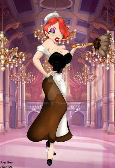 I really love how well you drew this picture. Jessica has a perfect figure, perfect sized breasts, long beautiful red hair, flawless skin, very sexy maid outfit, cool feather duster and hat, beautiful blue eye and red lips, very sexy pose, and an interesting yet calm facial expression.