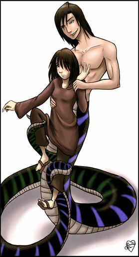 Another anonymous commission of a young naga putting the squeeze on her very first victim.Related content
