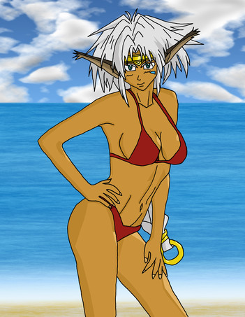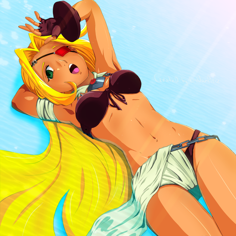 's OC Sandra's back. And she's havin' a bit of R and R after all the fierce battles she's been in within the Shards Universe. She seems to be enjoyin' herself.Color Commission.