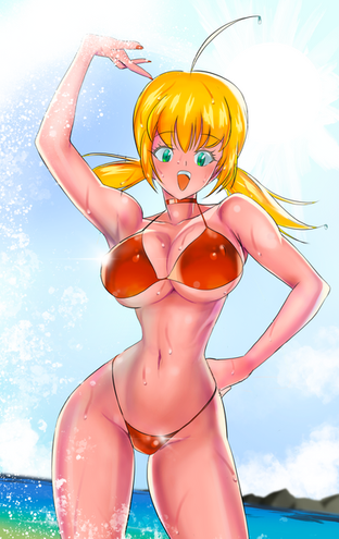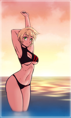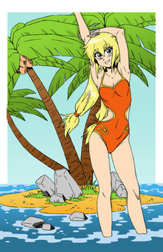 btw, for those wondering, Sandra did swim out here on her own. Since the day is ending, she'd likely use her magic to 'port or fly herself back to the main beach to join the rest of the crew. Also, this location is not exactly on Earth... it's that same resort world that Shoxxe and Sever have been drawing/colouring of late. For the next pic Sever is colouring for me, you'll get to see yet ANOTHER place in the resort... a really nice place