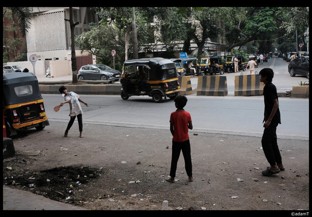 well, street photography is about capturing decisive moments without staging them. This picture requires observation to be understood. To whom belongs the shadow on the wall? How could the photographer capture it without getting in the image? The shadow player captured with an amazing sharpness, the ball caught mid-air, the real player dressed as the shadow one making the shadow even more tricky...give a surreal feeling to the image that made it for me