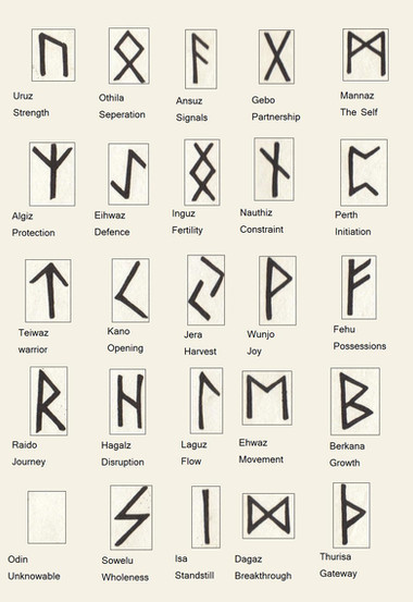 For more informations on Anglo-Saxon, Old Saxon, Norse and Gothic runes, see this table: [link]