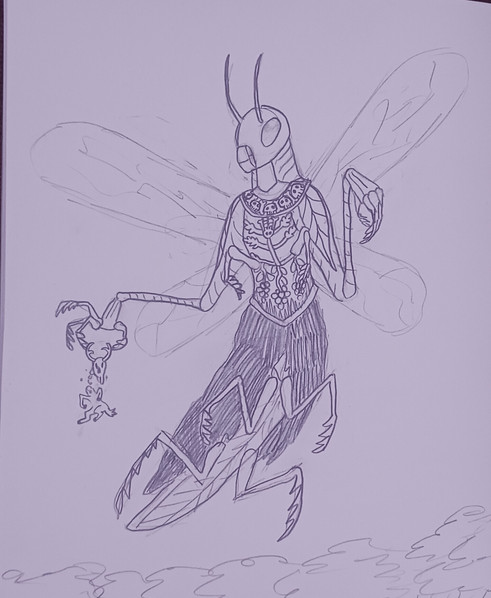 #creature #sketch #insect #pencildrawing #bug #doodle #fantasy #grasshopper #monster #wings #characterdesig