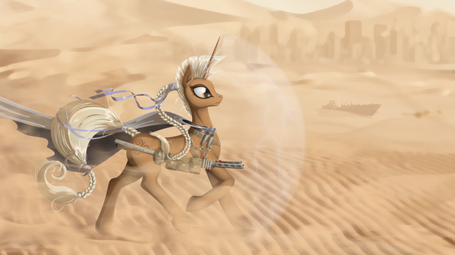 Хехе. Винил, оказывается, в таком образе уже рисовали. И портрет, и ростовку. Но почему бы и нет. Хороших кроссоверов MetalGear x MLP - по пальцам пересчитать можно.