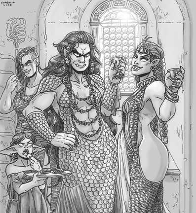 Three ozcuras -these fake, self-proclaimed orcs from Polforia, lackeys of the Pirate queen- nodded. "Royalty did this, so It must be fancy!"