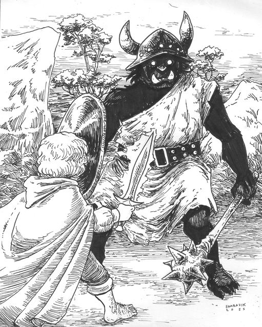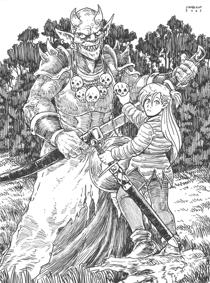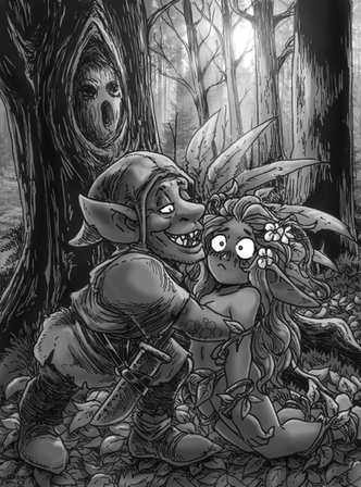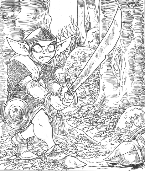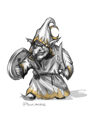 In the case of the illustration, is a goblin with a red cap fashioned after dwarves, under dwarven service as a mercenary.