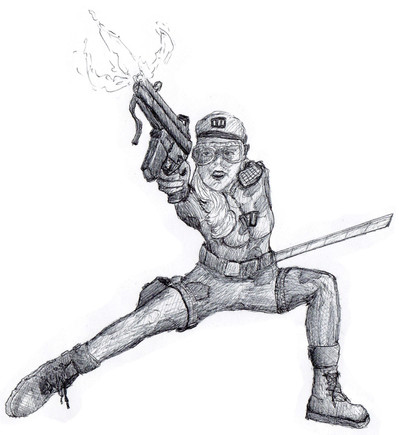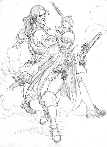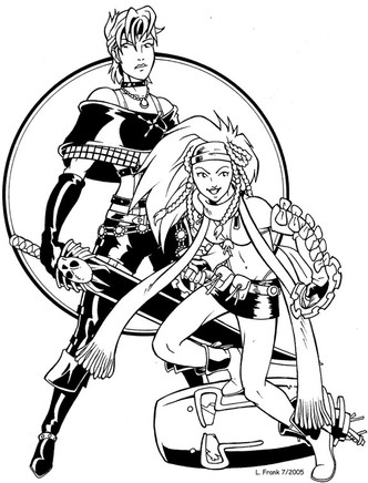 Two more hunters from the second team.Ruby is a specialist in defensive spells and a skilled melee and ranged fighter. Ferra is a jack of all trades, alchemist and mechanic; and also a lover of huge swords.