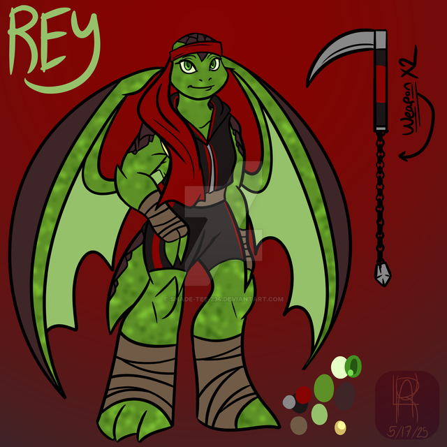 Here is Raph! I decided to make the turtles all red-eared sliders, just with slight hue alterations with the skin.Raph's eyes are a little more hazel, as a mix of 2012 and 2007. His overall design is inspired by Rise! Leo and Raph, with a splash of 2012 & 1987. His personality is more aligned with 2007 with a splash of Rise. He is a little bit more scarred up as he'd put himself before letting his little brothers get hurt. And in this fan iteration, much like Rise, he is the oldest (twinning with Leo - both are 17, Donnie 16, Mikey 15).