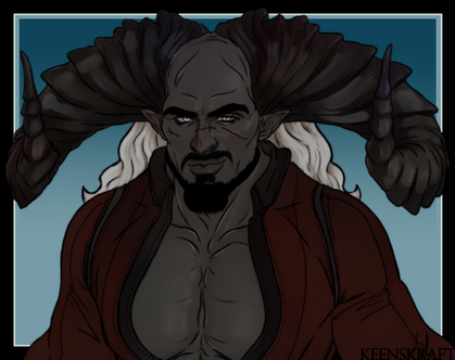 Yes, he deliberately chose to call himself Bas. Bas isn't an Inquisitor, he's an extra character that popped up in my head, and he was raised as part of the Qun but broke away from it. He has a few broken horns and some nicks out of his ears (also black eyes like the DA2 Qunari).Bas is mine, the Qunari however are from Dragon Age.
