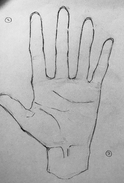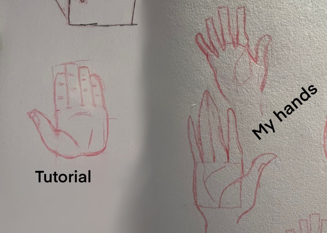 First I took a picture of my hand and then tried drawing it from that photo. Then I followed the tutorial and then drew it again trying to remember the tips. I do definitely like the more stylized tutorial look.