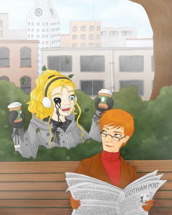 Flash forward a few years and Ink ends up getting tangled up in one of Joker's scheme's, but is rescued by Batman. This is were her insane fangirl crush on him begins. Now Ink has gradually come more and more out of her depressed shell, and had taken up free-running as a night time hobby to get around Gotham, casually taking out the occasional mugger now and then. And after meeting Batman, she constantly harassed and bugged him when she ran into him on patrol and even doing crazy things like painting huge murals of the caped-crusader on the side of buildings. Now since Batman didn't see her doing anything really BAD and since he didn't want her being corrupted by the guys at Arkham, he never turned her into the Asylum. But unfortunately some members of Gotham PD were not so patient and she ended up getting turned in anyway. That's were she met Jonathan Crane and the rest of the Rogues. Her relationships with the people of the Gotham underworld is the focus of my stories with her.