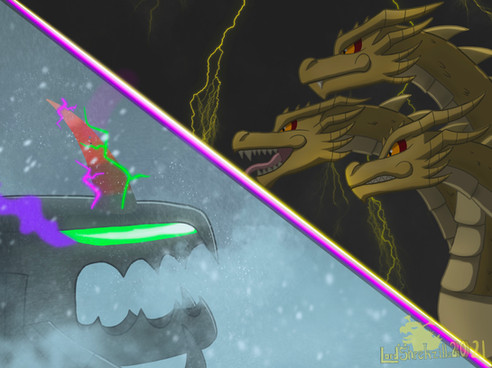 The idea of an unexpected crossover (Ghidorah is not very happy with this turn of events)Related content