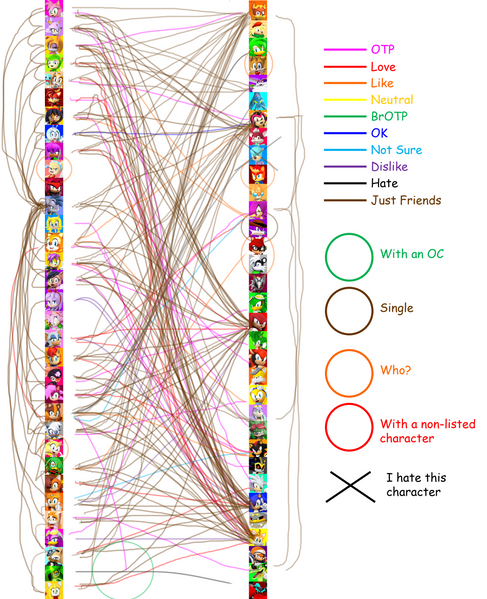 Unsure doesn't mean I don't ship them. It just means at this moment in time, there's no real pairings for me to consider, or the ones I'm aware of don't mean anything to me. A black X doesn't mean I hate a character. it just means I think they're either better off alone, or simply would struggle to maintain a long relationship with anyone they know.
