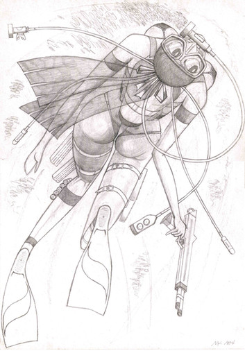 An original character I made just for fun. She's meant to be part of the Romantically Apocalyptic web comic. She does underwater recon for Captain, though that's probably not a good thing. >.>Edit- New scan. Hopefully this one is a bit clearer but lacks the high resolution. (I can't win.)