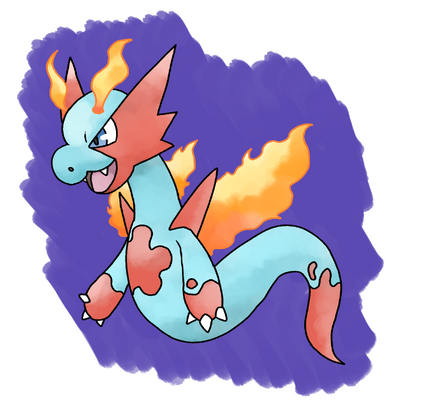 Pokedex Entry: Komyroxes are dangerous to most people except their trainers. They have more venom in their fangs than any other poison type and they usually keep away from urban environments as to not be a danger. When threatened the venom flows into the fire covering their body to keep people and trainers away.