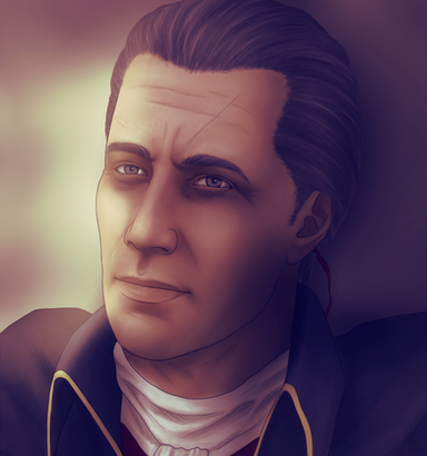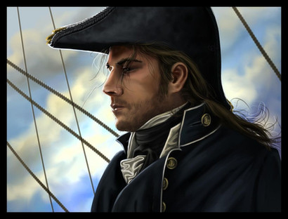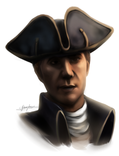 Haytham Kenway fram Assassin's Creed III. I found reference somewhere in tumblr. He has no face. Dammit. I will correct this ass soon as... oh okay. probably never. But i love Hayth aand... he has black hole in his ear. wtf.EDIT