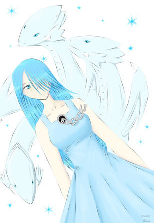 w00t I colored it! It took me 2 days to draw and color. But hey, it turned out good. ^^ I still need to practice more with Photoshop though. The could looks weird, lol. And I was also too lazy with the shading, but that was pretty hard to do!ANYWAY, the weird little strings with little bells are "Emotion Strings". XD Stupid name, I know. But she's strangled in them and she can't seem to get them off! I like the way they turned out, I should draw those things more often!