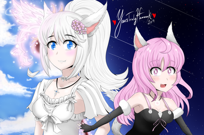 Zae is the pink one, Yoru is the blue one and Kage is the white kitsune, if that wasn't clear. :3