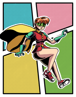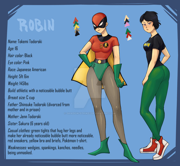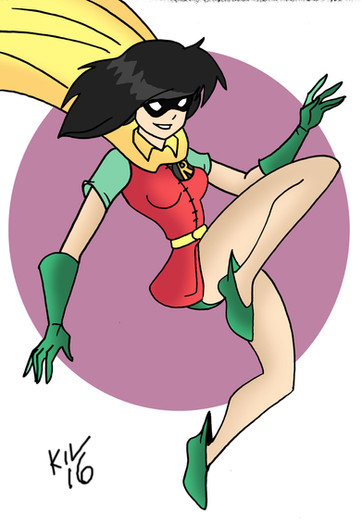 This is part of a commission made for me by the awesome www.deviantart.com/canecoffy of another batwoman character,this time her sidekick Robin AKA tokemi Todoroki.Name:tokemi todoroki