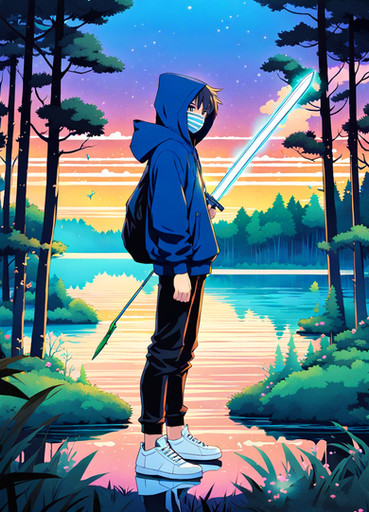 #anime #originalcharacter #warrior #animeboy #dreamup #digitalart #sword #characterdesign #digitalpainting