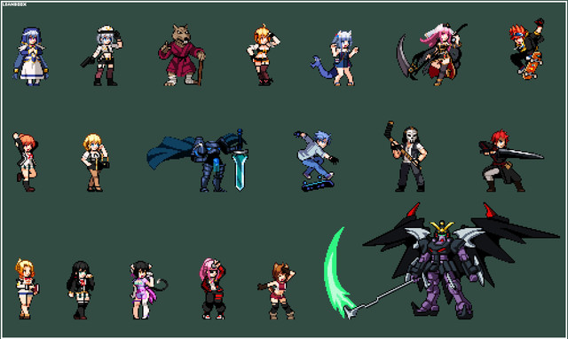 This been lying around in my folder for awhile now, and I haven't touch any sprites recently, so I figure I should just post this.The only difference with this one is that Trilby and the Tall man has been added. I was inspired to do this when Deceasedcrab was "Let's Playing" the Trilby series. And the other was more clothing edit for Shino, along with some edits to Mokou.