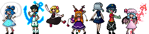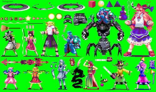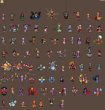I'm pretty sure I said before that I'm a sprite "editor". Meaning I take existing sprites to change them a lot or a little. In some cases I take multiple part from different sprites to make a new one. Oh right, what inspired me to do this in the first place was see a picture of a fake screenshot of Touhou character I wish were playable.