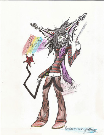 So heres chess. I drew him..rather insane, jyes? How he bent his arm like that? I'd rather not question a cheshire cat, thank you.Art is mine, but chess is
